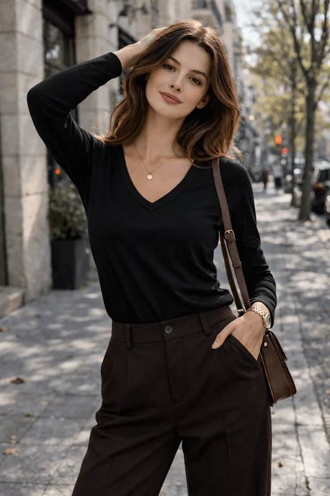 remera manga larga escote v de microfibra con lycra