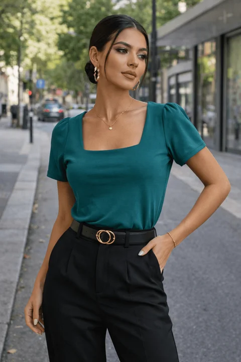 Remera escote cuadrado , manga con volado. modal